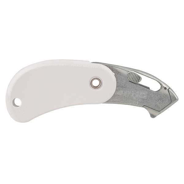 The PSC-2-100 Folding Safety Cutter is the best tool for cutting through materials like tape, plastic strapping, wire ties and much more. It has a bladeless tape slitter that is perfect for general purpose use. This self-retracting folding safety cutter features a lanyard hole so you can easily attach it to your belt or wrist strap. The compact design of this utility knife makes it easy to carry around with you wherever you go. With an overall length of 4 in., the blade extends up to 1/4" for added control when cutting. Whether you are looking for something small and compact or heavy duty, the PSC 2 100 Folding Safety Cutter will be able to handle any job thrown at it.