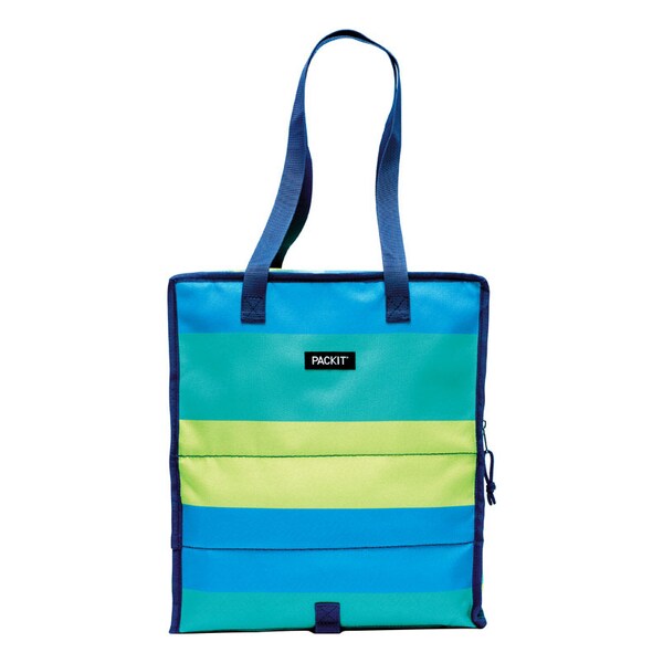 Keep perishable groceries fresh and safe while you run errands with this genius cooler shopping bag. The cooling power is built into the base of the bag so there's no need for ice packs to keep items chilled. From the checkout aisle to your kitchen your meat dairy fruits veggies and frozen foods stay safe so you don't have to stop home to unload them. This grocery cooler bag also offers plenty of room on the top to carry non-perishable items. Perfect for communities with plastic bag bans this soft cooler bag is an everyday essential.