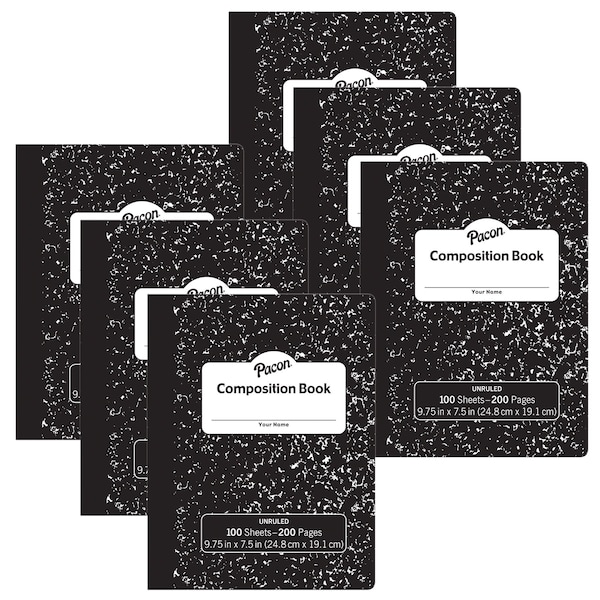Black marble, hard cover composition book with 100 sheets to meet your needs. Sheets are unruled giving you all the space you need to draw and annotate. Great for drawing, note taking and journaling. Recyclable. Measures 9-3/4'' x 7-1/2''. Sold as a pack of 6 composition books.