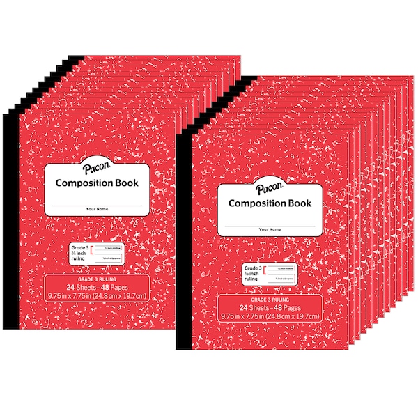 Composition Book, Grade 3, Red, 9.75 x 7.75, 24 Sheets/Book, PK24