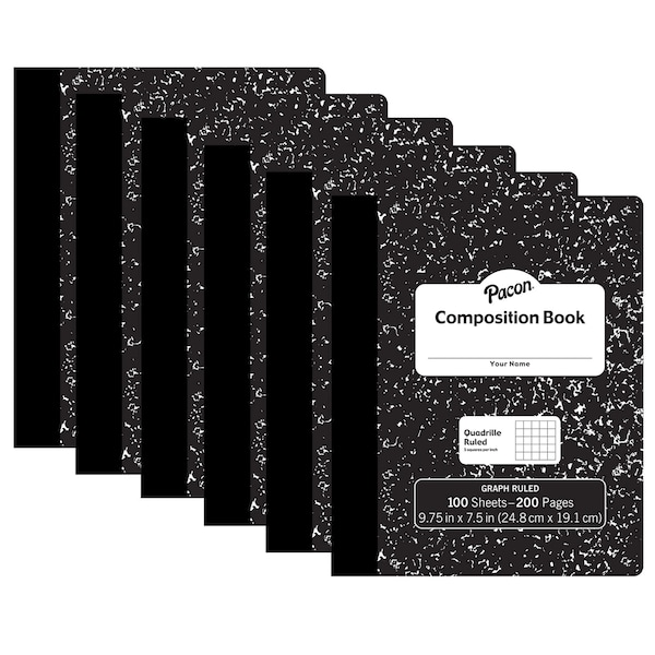 This Hard Cover one-subject composition book is great for drawing graphs, illustrations and more during note taking and journaling. Each sheet is 1/5" quadrille/grid ruled on both sides. Each composition book measures 9-3/4"H x 7-1/2"W with 100 sheets and 200 pages. Recyclable. Sold as a pack of 6 books.