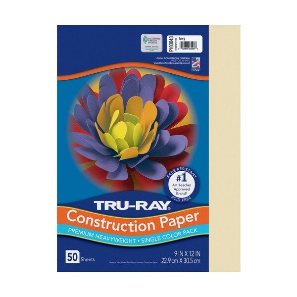 Pacon Construction Paper, 76 lb, 9''x12'', 50/PK, Ivory PAPER,CONST,TRURAY,9''''X12'''',