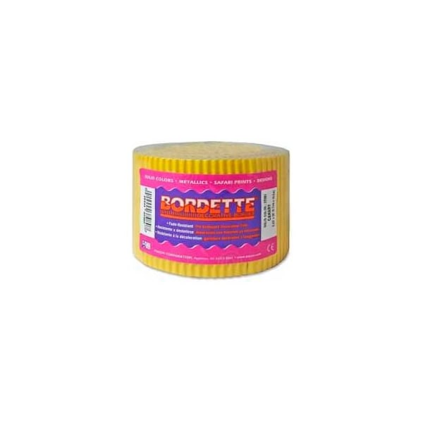 Pacon bordette decorative border, 2-1/4" x 50', canary, 1 roll decorative borders create the appearance of a framed edge to dress up any bulletin or display board. Fadeless art paper keeps projects looking fresh for a long time. Each border is corrugated on one side. The sturdy corrugate provides a three-dimensional appearance on any flat surface. Each border bends, molds, turns and twists to create unique, layered designs.