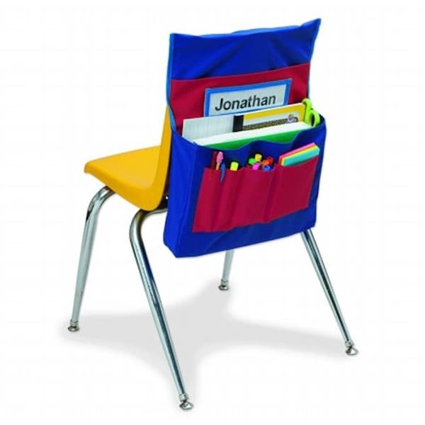 The perfect solution for storing and organizing children's school materials while keeping them easily accessible. There are two large pockets and four small pockets, along with a place for the student's name. Fits most preschool and elementary size chairsLength: 18.5 Width: 14.5 Height: 2.5