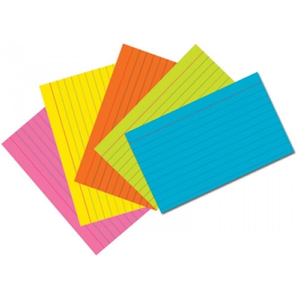 Organize notes, files, project lists and contact information with index cards. Sturdy tagboard ruled and unruled in White and Super Bright in 5 assorted colors. Ruled index cards are ruled 1/4".