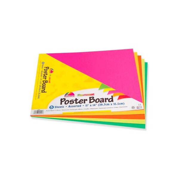 Pacon recyclable poster board, 11"w x 14"h, assorted, 5/pack poster board set contains one sheet each in a different color. Great for making small posters, signs, announcements, charts and art projects. The smaller size is perfect for home or office use.