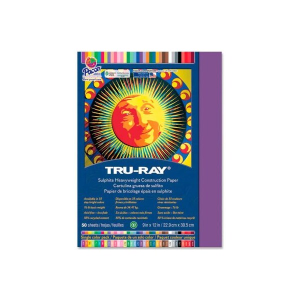 Pacon tru-ray construction paper 9" x 12" purple tru-ray construction paper is made of heavy 76 lb. Stock. Heavyweight, 100 percent sulphite paper is tough enough to withstand scoring, folding and curling without cracking and tearing. Superior fade-resistance keeps projects brighter and fresher longer. Acid-free material offers less fading. Recyclable construction paper contains a high percentage of recycled fiber.