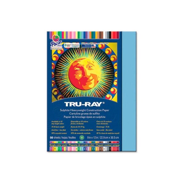 Pacon tru-ray construction paper 9" x 12" sky blue tru-ray construction paper is made of heavy 76 lb. Stock. Heavyweight, 100 percent sulphite paper is tough enough to withstand scoring, folding and curling without cracking and tearing. Superior fade-resistance keeps projects brighter and fresher longer. Acid-free material offers less fading. Recyclable construction paper contains a high percentage of recycled fiber.