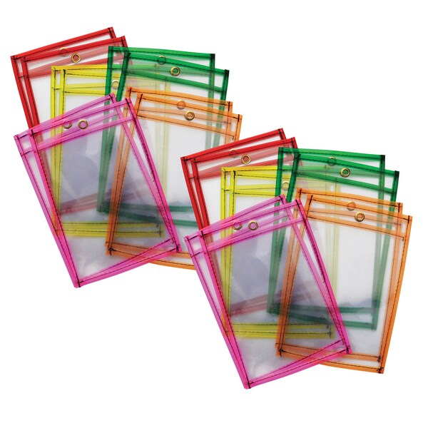 Dry Erase Pockets, 5 Assorted Neon Colors, 6in x 9in, 10 Count, PK2 (Discontinued)