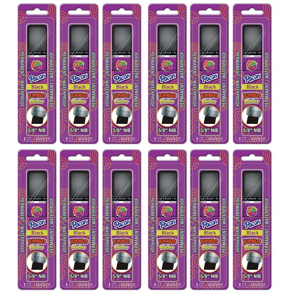 Ideal for creating posters, displays or other types of signs. The 5/8" nib holds just the right amount of ink to give a thick, dark line that can be seen close or from a distance. Permanent ink. Non-toxic and conforms to ASTM D-4236. Sold as a pack of 12 black markers.