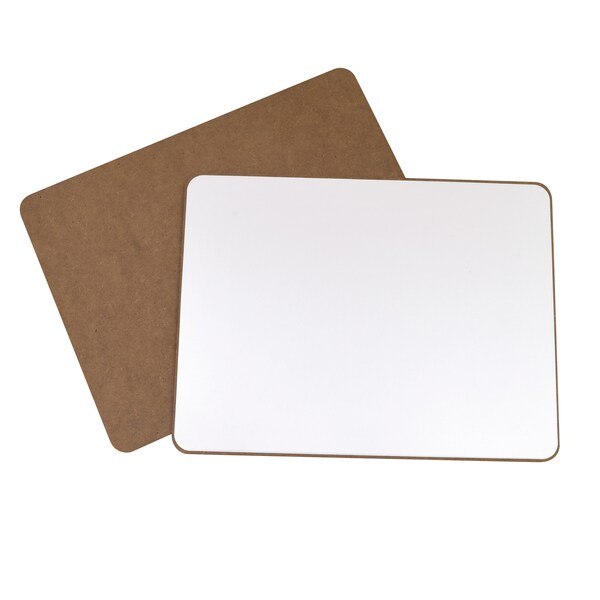 This 9" x 12" sturdy melamine whiteboard is perfect for the classroom, home and even travel. The one-sided board has a magnetic surface, which is great for attaching notes and instructions with magnets, or for using with magnetic letters, shapes and more. Plain/blank surface makes it a great option to teach multiple activities and lessons. Great for interactive instruction to test concept understanding or for small group work. Dry erase surface erases cleanly and easily. Each pack includes 25 boards.