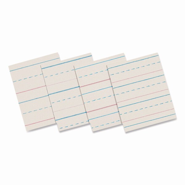 Rulings conform to Zaner-Bloser and/or D'Nealian handwriting programs. Bright tablet paper ruled on both sides with red baselines, blue dotted midlines and blue headlines.