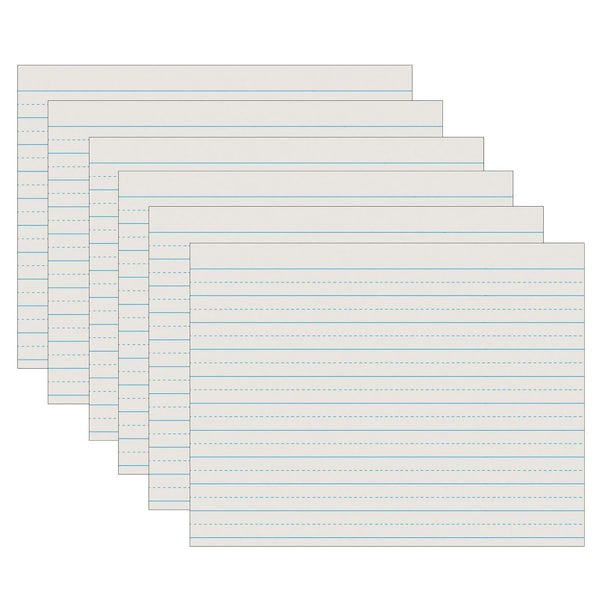 Clean White newsprint has a light blue ruling on both sides. Dotted midline serves as a guide for controlled writing, making it great for handwriting practice and tracking students' handwriting progress over time. Helps to build a solid foundation for students to write legibly and communicate effectively through writing. Package contains 500 sheets. Measures 11" x 8.5". Recyclable. Sold as 5 packs for a total of 2500 sheets.