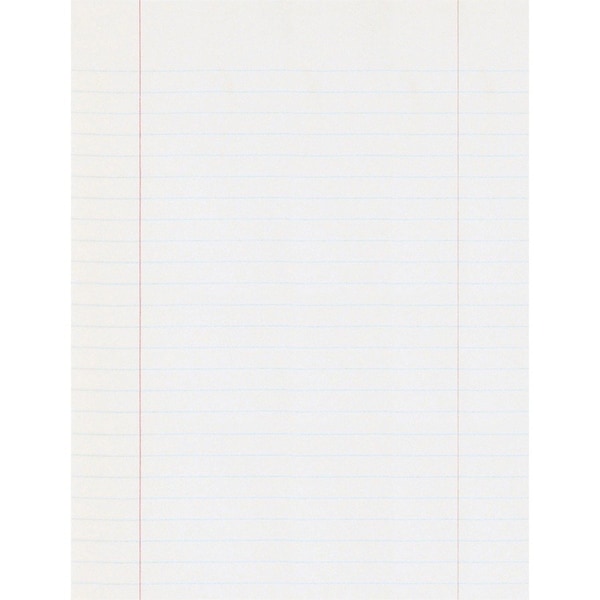 Quality writing paper is excellent for themes and penmanship. Clear, smooth white bond is ruled on both sides for a wide variety of uses. Recyclable composition paper is not hole-punched. Both sides are printed with a 3/8" ruling and red margin.