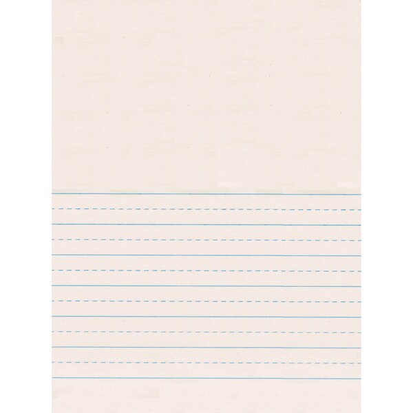 Clean White newsprint printed both sides with 5-1/2" blank picture story space at the top of the sheet. Great for students learning to write stories and drawing illustrations to complement writing. Ruled on both sides with a blue dotted midline. Package contains 500 sheets. Measures 9" x 12". Recyclable. Sold as 2 packs for a total 1,000 sheets.