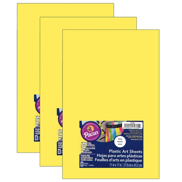 A durable, flexible and versatile 3-D art medium that is perfect for arts and crafts projects. This 12 pt. polyethylene material can be used to create custom stencils and die-cuts. It accepts many types of medium, so its great for drawing, painting, marbling, collages and monoprints! Get creative and create your own personalized sketch book covers, weaving projects, sculptures, props, signs and more! Lead free and acid-free. Measures 11" x 17". Each pack includes 8 sheets. Sold as 3 packs for a total of 24 sheets.