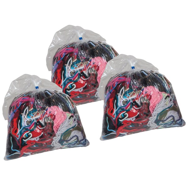 Each pack of Remnant Yarn contains a variety of lengths, sizes, and colors of yarn. Especially suitable to craft projects where varying colors and lengths of yarn are needed. Colors can range from white to bright, fluorescent to earthtone. Contents of each reclosable bag is different. Each bag includes 0.5lb of remnant yarn. Sold as 3 packs, 1.5lbs yarn total.