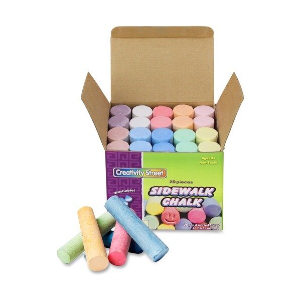 Sidewalk Chalk, Washable/Nontoxic, 4inx1in, Assorted, 20PK