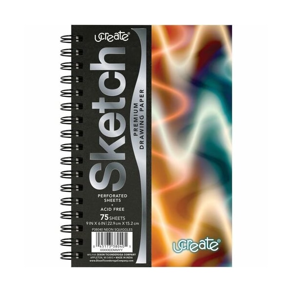 Pacon Sketchbook,Abstract,75 Pages,120 gsm,12''x9'',Neon BOOK,SKTCH,NEONABSTRT,HWT,75PGS