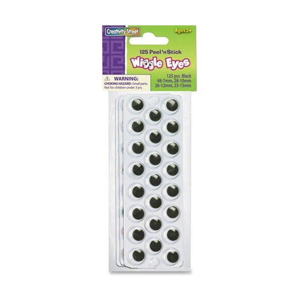 Wiggle Eyes bring projects to life. Use the convenient, peel-and-stick back to attach to different mediums so no glue required. Set includes 52 pieces of 7mm, 33 pieces of 10mm, 29 pieces of 12mm and 23 pieces of 15mm eyes. They are ideal for the classroom, art room, daycare and home. Wiggle eyes on sheets are recommended for children ages 3 and up.