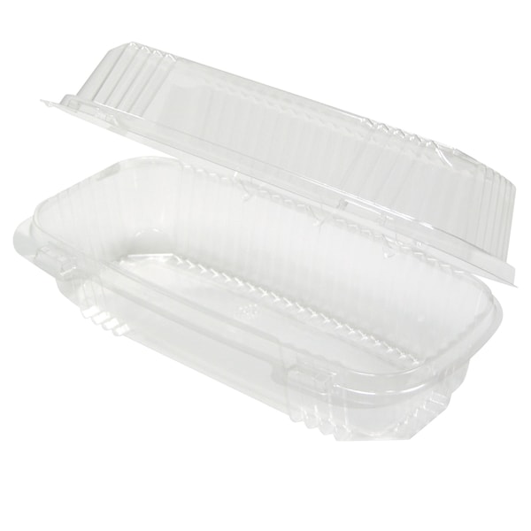 Enhance your packaging with the clarity and distinction of PET bakery containers. Our packaging effortlessly combines style and functionality to meet all your food packaging needs effectively. Made from strong PET material with a wide temperature resilience range (-20°F to 120°F) enables placement in freezers and heated display cases. Crystal clear packaging to optimize merchandising of baked goods. Great for merchandising bakery items, cheeses, produce, sandwiches, and more. SmartLock® system features a tight, audible click closure that helps ensure maximum food freshness. Smooth front panel makes sticker-labeling easy. Strong, rib-reinforced sides and back accommodate heavy items and provide enhanced crush resistance. Break-resistant hinge is flexible enough for easy closure and reliable enough for repeated openings and closings.