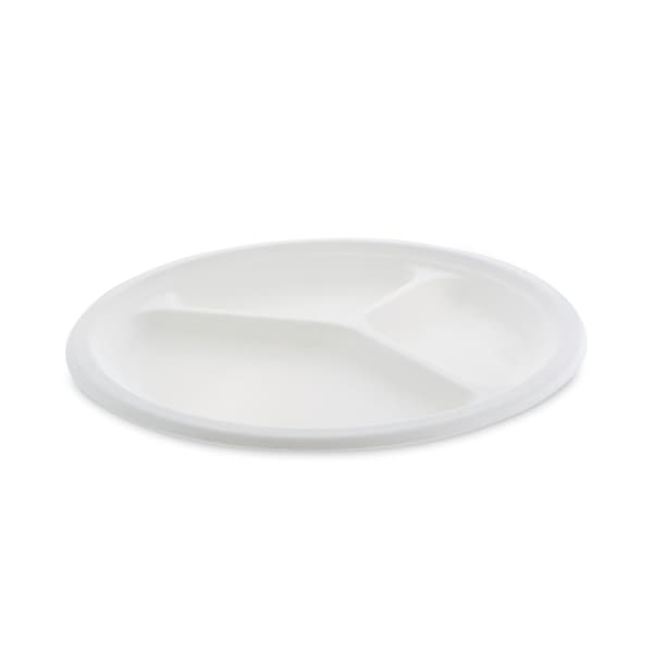 Compostable Fiber-Blend Bagasse Dinnerware, 3 Cmp Plate, 10in D, PK500 (Discontinued)