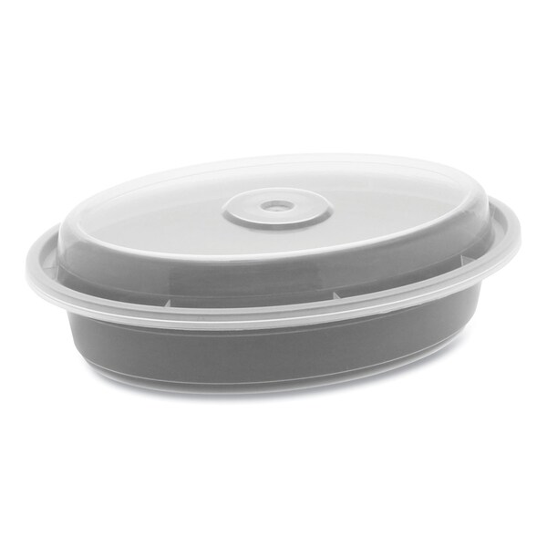 Newspring VERSAtainer Microwavable Containers, Oval, 12oz, 6.8x4.8x1.45, Black/Clear, Plastic, 150PK
