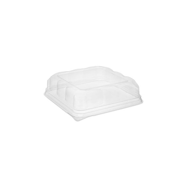 Flexible, hard-to-crack RPET material protects your product. Oustanding clarity for great merchandising opportunities. Made with recycled PET water bottles. Dome LidFor 6 x 6 brownie container. Food Container Type: Lid; Materials: PET; Food Container Material Type: Plastic; Colors: Clear.