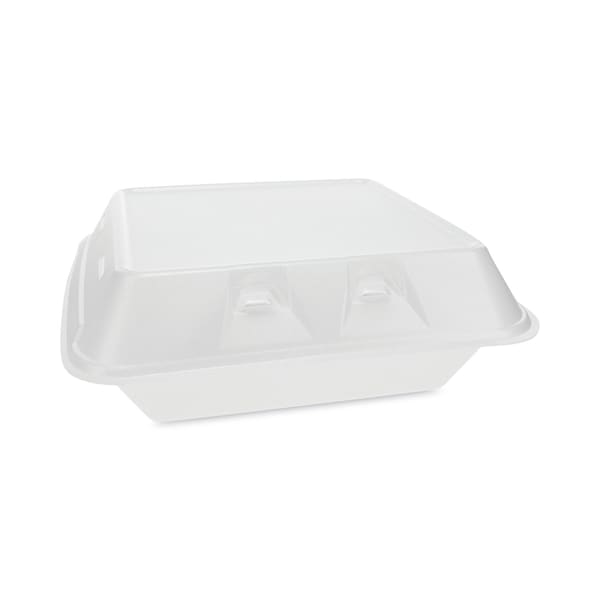 Vented Foam Hinged Lid Containers, 9x9.25x3.25, 3-Comp, Wht, PK150