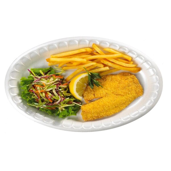 Features Satin smooth foam surface. Choose from a stylish white or vanilla color. Mix and match with Placesetter Deluxe Tableware. Clear covers provide food protection for merchandising or carry-out applications. Case of 900. Size - 7 in.