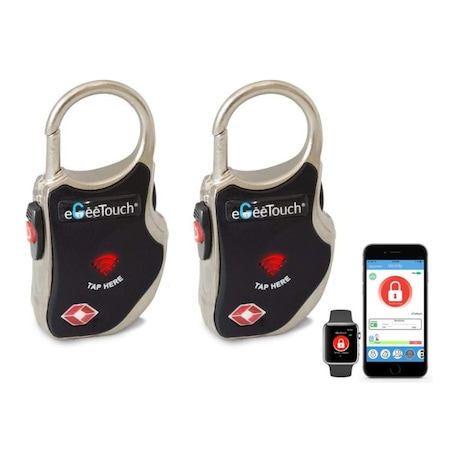 Smart Travel Padlock, Patented DUAL Access NFCBT, TSA Compliant, Tracking, iOSAndroid, BLK, 2Pack