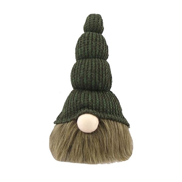 14 in. Chunky Knit Hat Fabric Sitting Gnome Sculpture, Green