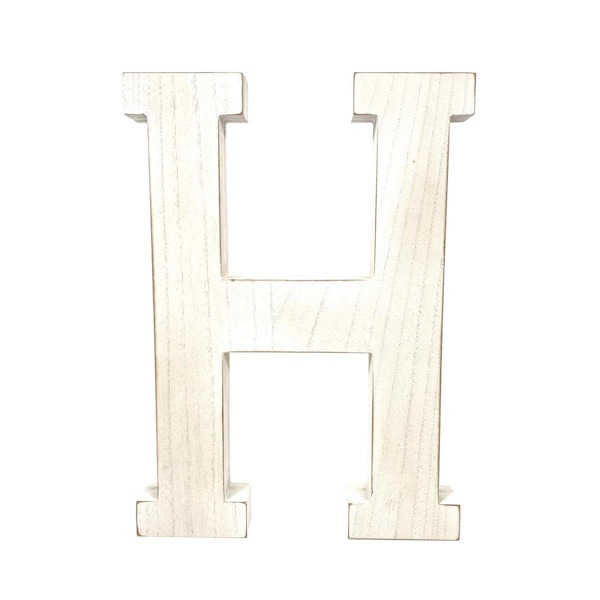 16 in. Distressed Wooden Initial Letter H Sculpture, White Wash (Discontinued)
