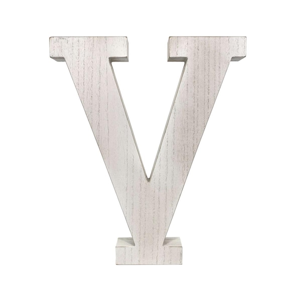 16 in. Distressed Wooden Initial Letter V Sculpture, White Wash (Discontinued)