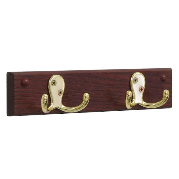 2 Double Prong Brass Hook Rail & Coat Rack - Mahogany - 10 x 225 x 175 in. (Discontinued)