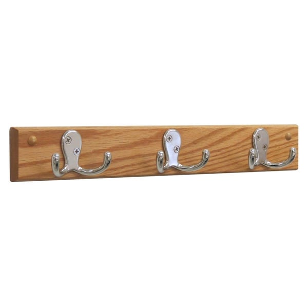 3 Double Prong Nickel Hook Rail & Coat Rack - Light Oak