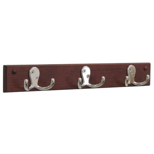 3 Double Prong Nickel Hook Rail & Coat Rack - Mahogany