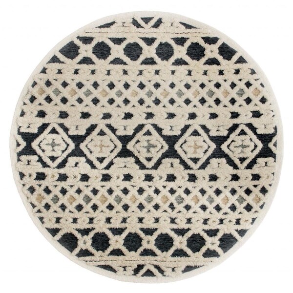 4 ft. Round Blue, Cream & Tan Decorative Area Rug