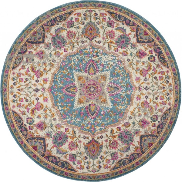 4 ft. Round Pink & Blue Floral Medallion Area Rug (Discontinued)