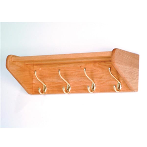4 Hook Shelf in Light Oak - Brass