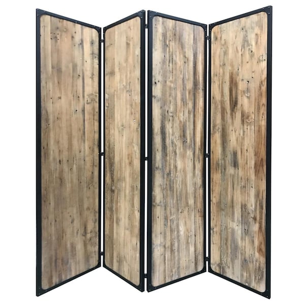 4 Panel Room Divider, Brown - 84 x 80 x 1 in.