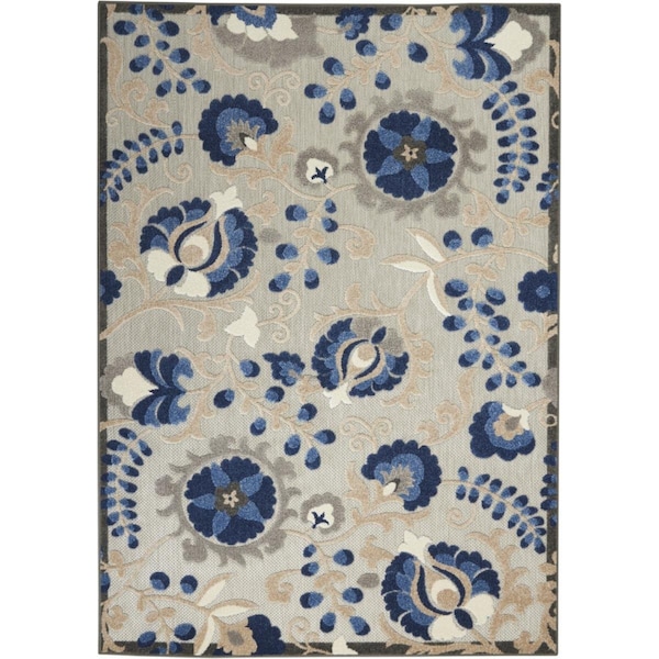 4 x 6 ft. Natural & Blue Indoor & Outdoor Area Rug