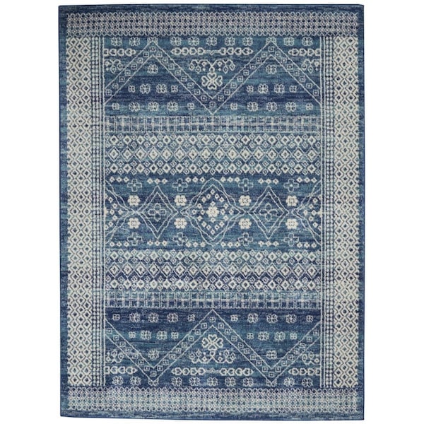 4 x 6 ft. Persian Motifs Rectangle Area Rug - Navy Blue & Ivory