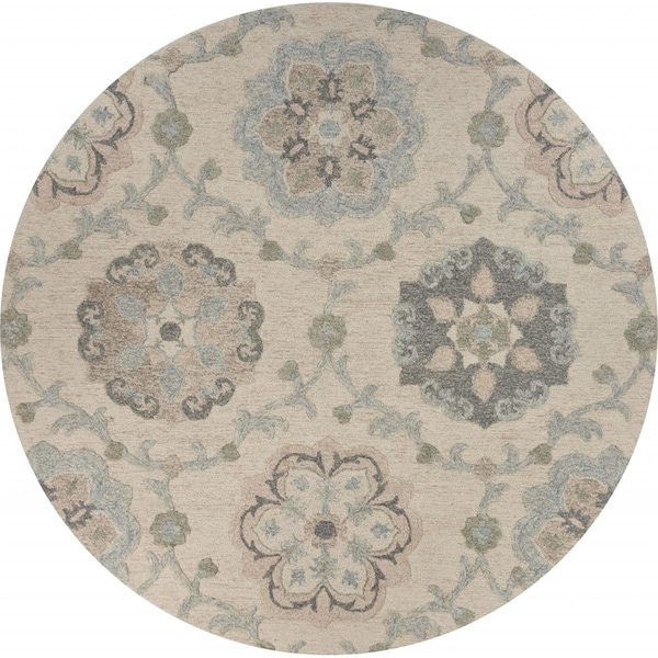 5 ft. Intricate Floral Round Area Rug - Ivory