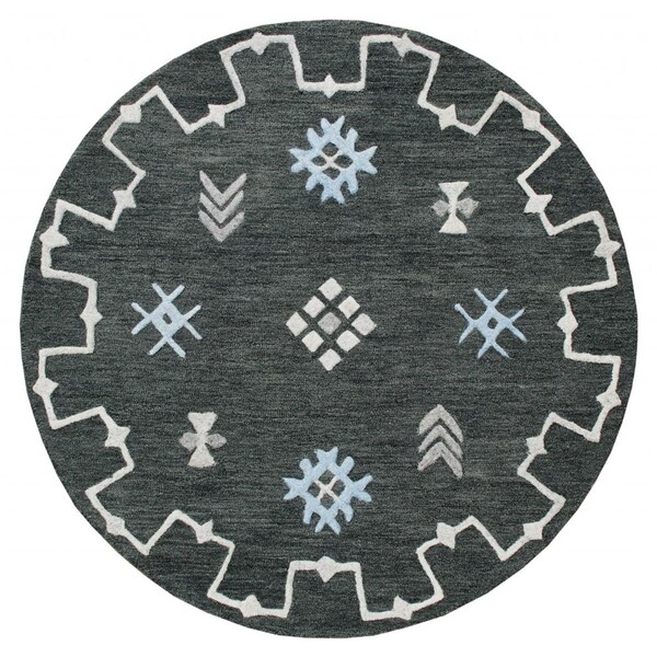 5 ft. Round Charcoal Geometric Border Area Rug - Charcoal - 5'
