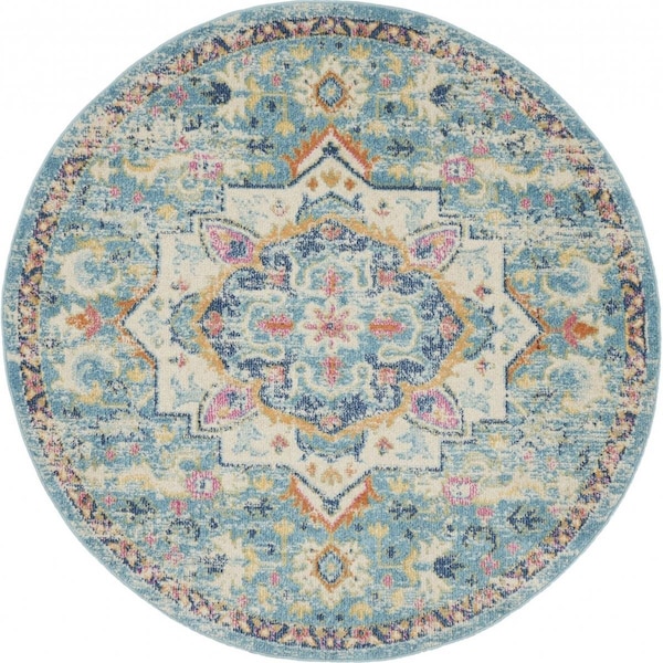 5 ft. Round Distressed Area Rug - Light Blue & Ivory