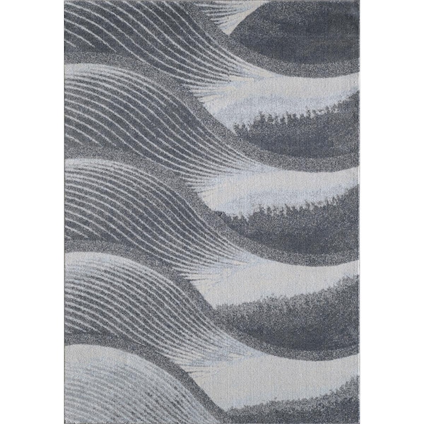 5 x 8 ft. Abstract Waves Modern Area Rug - Grey & Blue