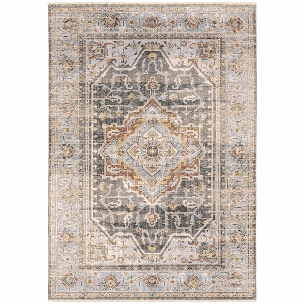 5 x 8 ft. Gray Blue Machine Woven Medallion Indoor Area Rug