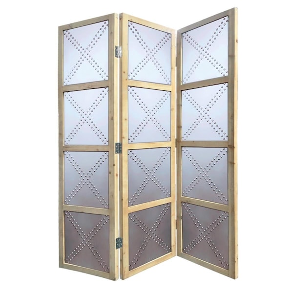 63 x 2 x 84 in. Charming Silver Wood Screen with 3 Panel