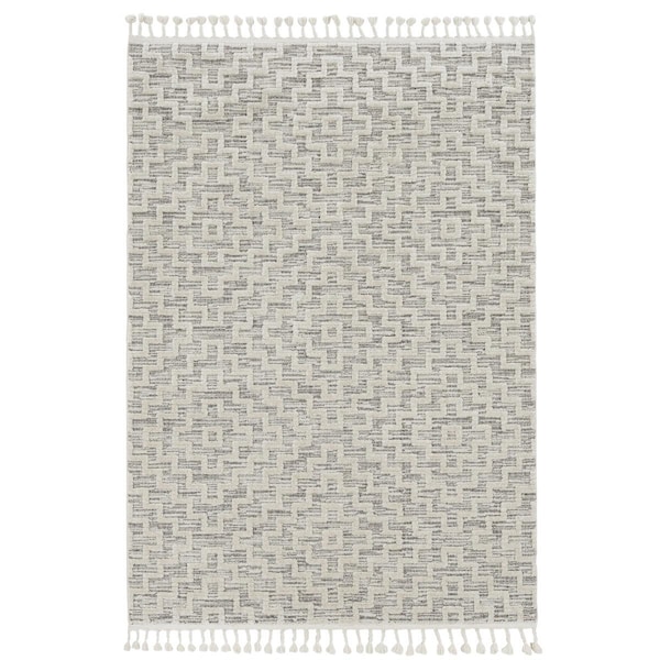 63 x 91 in. Polyester Rug, Ivory Grey